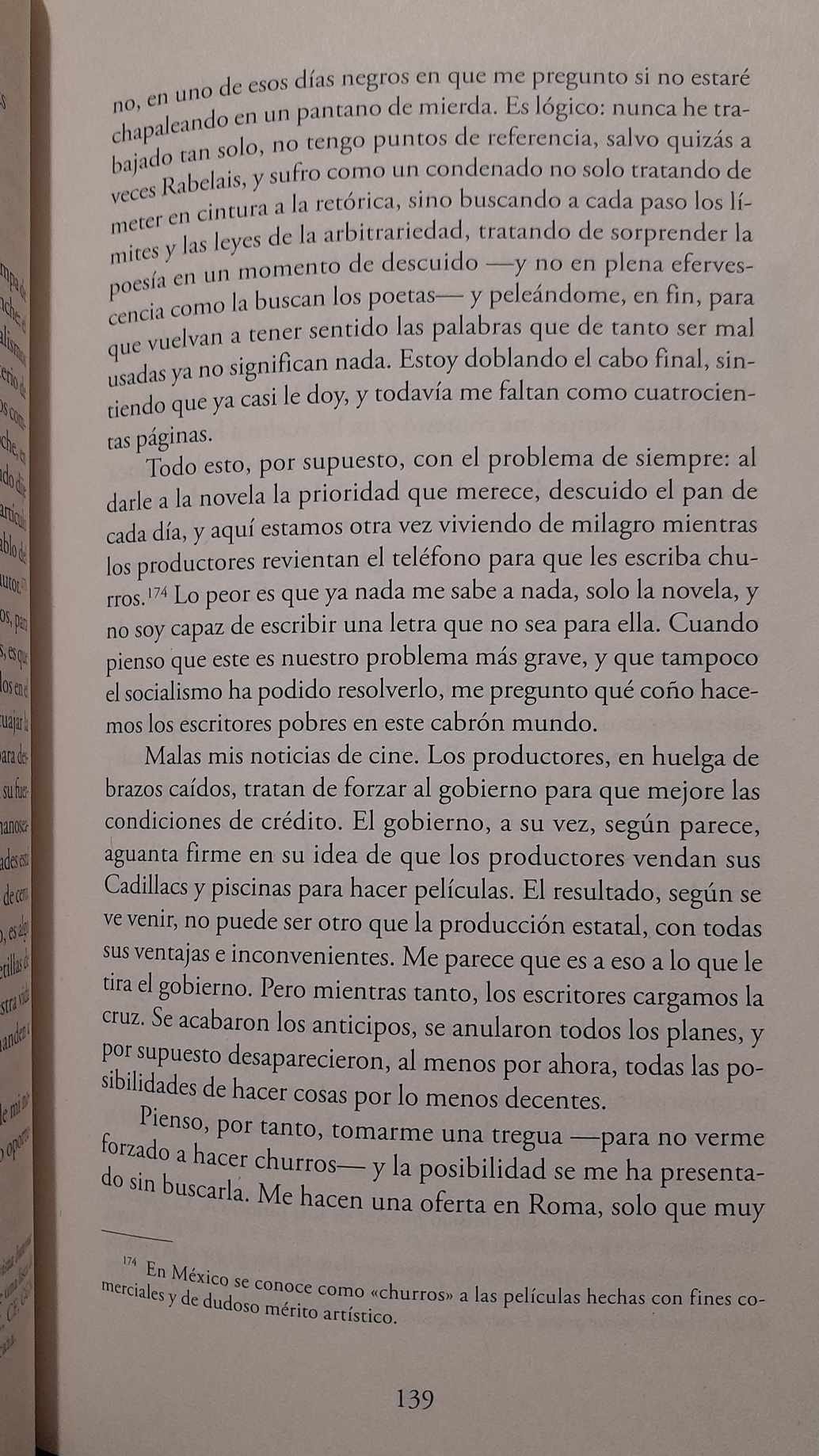 La correspondencia tiene además el mérito de derribar varios mitos, como el de la dedicación única y exclusiva de García Márquez a la redacción de Cien años de soledad. Lo cierto es que, en paralelo, el colombiano también elaboraba "churros" -guiones cinematográficos para producciones comerciales en México- con el fin de subsistir económicamente.